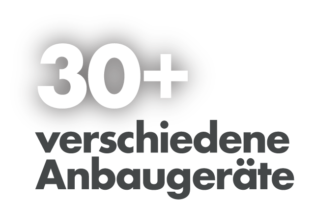 Schaufeln (für Aushub und Planierung), Bohrer, Gabeln, hydraulische Fräsen, Kehrbesen u.v.m. – die große Auswahl an Anbaugeräten ermöglicht es, mit einer einzigen Maschine zahlreiche Funktionen auszuführen.