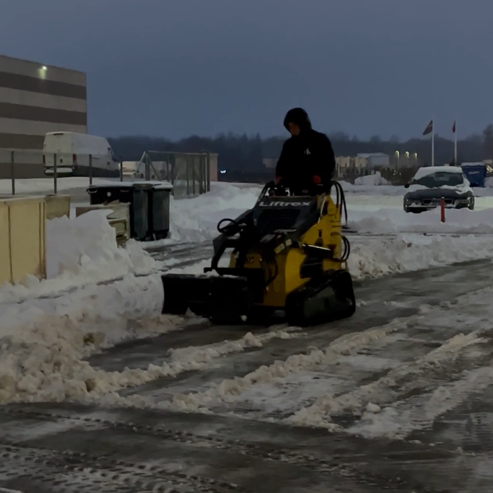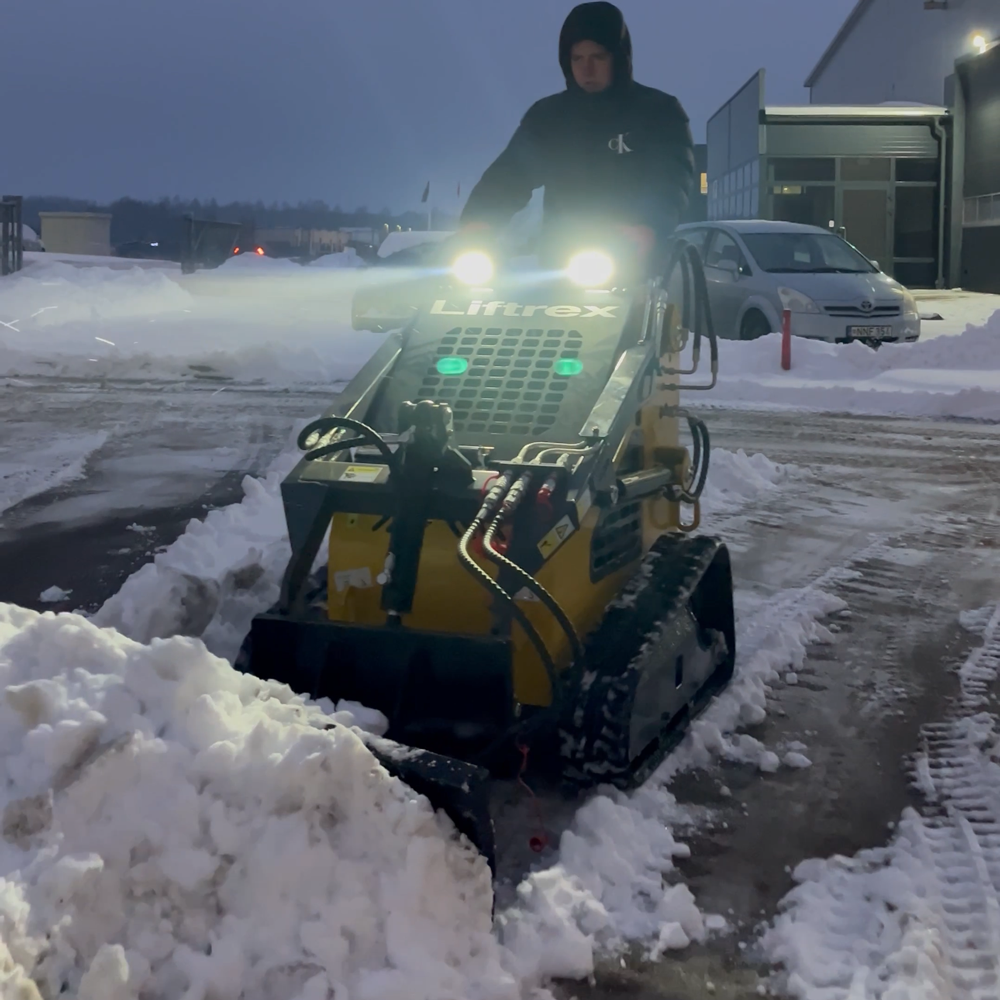 Mini krautuvas pasiteisina ten, kur svarbi apimtis ir greitis. Didelės aikštelės, sandėlių teritorijos, fermos, logistikos zonos – vietos, kur sniego daug ir jį reikia ne tik pastumti, bet ir perkelti.